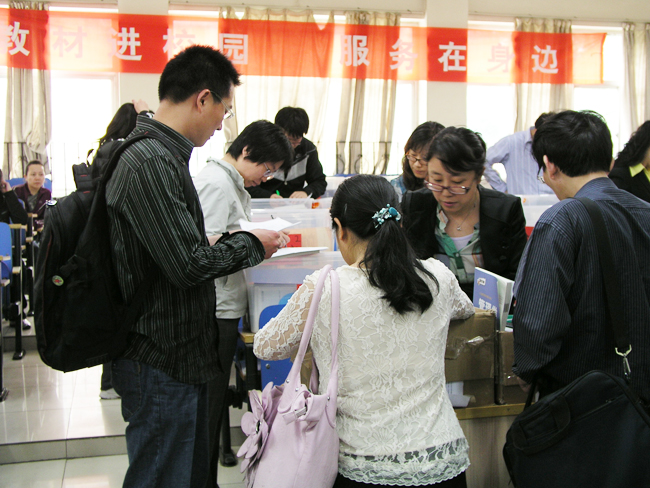 此次活动得到了北京工商大学的大力支持。活动当天,现场氛围很好,一些老师一边挑选图书,一边向代办站及出版社工作人员了解图书的详细情况,认真做笔记,有些教师还在样书领取处填写样书领取单。
