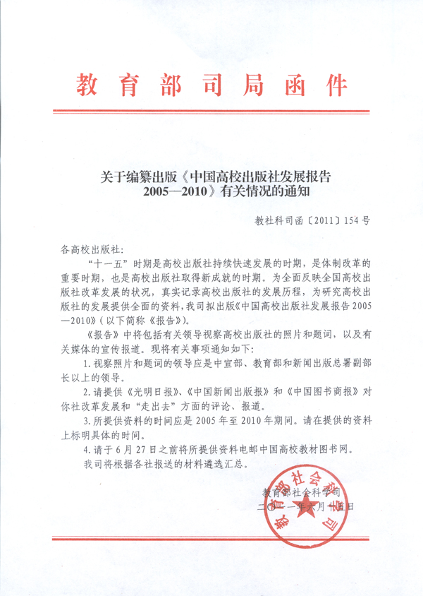关于编纂出版《中国高校出版社发展报告2005—2010》有关情况的通知 - 信息公告 - 中国高校教材图书网