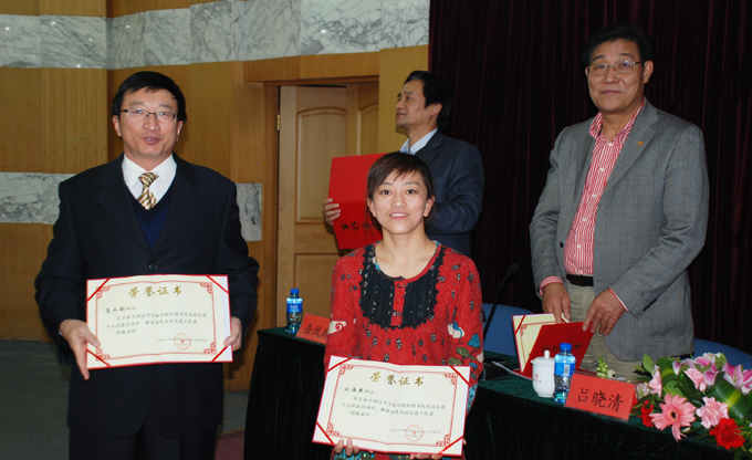 最后,刘军副理事长宣读了大学版协《关于表彰优秀高校图书代办站和高校图书代办站先进工作者的决定》,到会领导为26家“优秀高校图书代办站”和52位“高校图书代办站先进工作者”颁发了奖牌、奖状;魏小波副理事长宣读了大学版协《关于全国高校图书代办站重新审核认证结果、颁发组织成员证书的决定》,到会领导向71家合格代办站颁发大学版协代办站工作委员会高等学校出版社图书代办站成员单位证书。 与会领导颁发高校图书代办站成员证书
