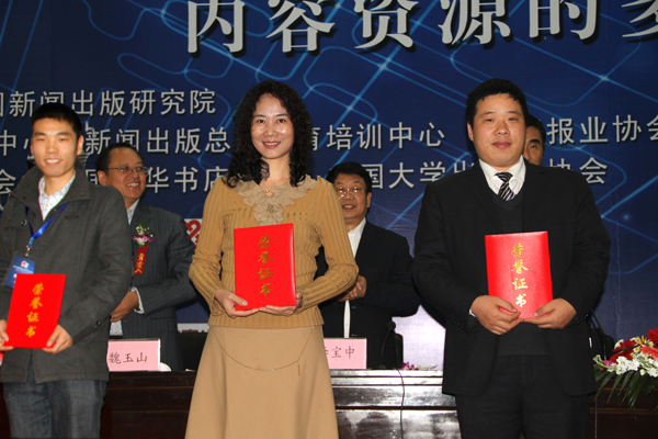 本网讯 由中国出版协会和中国新闻出版研究院主办的2011全国新闻出版业网站年会日前在京举办。本届年会以“内容资源的多元化经营”为主题,旨在探索行业网站如何利用多渠道传播、多终端发布,促进新闻出版行业的升级转型。在本届年会上公布了2011年全国新闻出版业网站评选结果,中国高校教材图书网荣获“最佳服务网站”,中国高校教材图书网副主任浑燕珍获得优秀CIO称号。
