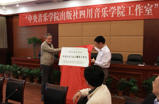 4月16日下午,“中央音乐学院出版社四川音乐学院工作室”成立大会在四川音乐学院梧桐楼隆重举行。 中央音乐学院出版社总编辑俞人豪教授和出版社办公室邢媛媛主任、四川音乐学院党委书记柴永柏教授及院系各部门领导、专家等出席了成立大会。成立会上,四川音乐学院党委书记柴永柏教授和中央音乐学院出版社总编辑俞人豪教授分别致辞。 首先,柴永柏教授在成立大会上作了具有前瞻性的发言。他说,四川乃至整个大西南的出版资源是十分丰厚的,有许多潜力值得进一步挖掘开发和利用,工作室的成立对丰富和促进大西南艺术出版业的发展,具有十分重要的作用。 接着,俞总编谈到,中央音乐学院出版社能在西南地区唯一一所实力雄厚的、也是全国规模最大的高等艺术学府——四川音乐学院成立工作室,感到非常荣幸。工作室的成立对出版社来说是一个大的突破,是对中央音乐学院出版社未来发展的一大推动。他希望在今后的工作中,四川音乐学院工作室能与中央音乐学院出版社保持亲密的合作关系,汇集科研和教学两方面的力量共同开拓一个广阔的出版市场。 最后,柴永柏教授和俞人豪总编辑共同签署了合作协议并为工作室揭牌。 古语言:“儒有合志同方”。文化的传承,资源的共享,两校的双赢,让我们共同期待并祝福“中央音乐学院出版社四川音乐学院工作室”展翅腾飞吧!