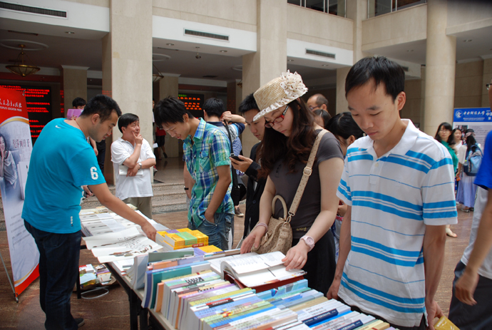本网讯:2012年6月13日,人民教育出版社向中央财经大学教师馈赠巡展样书暨《倪萍画日子》新书推介活动在中央财经大学举行。 2008年起,由中国大学出版社协会代办站工作委员会、高等学校出版社图书代办站服务中心主办的教材巡展活动已经持续了5年。中国人民大学出版社高校图书代办站、首都师范大学出版社高校图书代办站、北京世纪之光高校图书代办站、北京理工高校图书代办站具体承办北京地区巡展活动。中央财经大学连续3年协助开展了巡展专场活动,在场地协调、前期动员等方面做了大量卓有成效的工作。本次人民教育出版社向中央财经大学教师馈赠巡展样书专场活动意在回馈、感谢中央财经大学在高校教材巡展活动中所提供的帮助与支持。 在赠送巡展样书活动现场,部分老师得到了在此前教材巡展活动中预定的样书。到访师生络绎不绝,各种关于教育类、心理类的图书倍受青睐。有的教师在展台前仔细比对,寻找合适的教材;有的教师向工作人员了解教材的详细情况,工作人员一边耐心的进行解答,一边把老师们的需求记录下来。中央财经大学苗月新老师说,现在老师购买图书的方式主要有三种,第一种是去大型的书店购书;第二种是去网上书店购买;还有一种就是现场购买。他认为图书的现场展销更加直观、方便,本次回馈样书活动形式新颖、独特,很有意义。 人民教育出版社还带来了最新图书——《倪萍画日子》,以飨宴广大师生。作为著名主持人和明星,作者倪萍在生活中有许多特别的经历,其文章和画作的创作灵感多来自这些实际经历,是作者以极富生活气息的视角对身处世界的表达和感悟。该书吸引了众多师生驻足,许多人挤在展位前,场面火爆,不一会儿,小山一样的新书便被抢购一空。 一边是温馨的赠书活动,一边是火爆的购书现场。此次活动受到了广大师生的热烈欢迎,他们希望人民教育出版社可以带来更多更好的新书。人民教育出版社的现场工作人员也表示会听取大家的建议,认真做好高校教材服务工作,以满足广大师生对于教材及畅销书的需求。