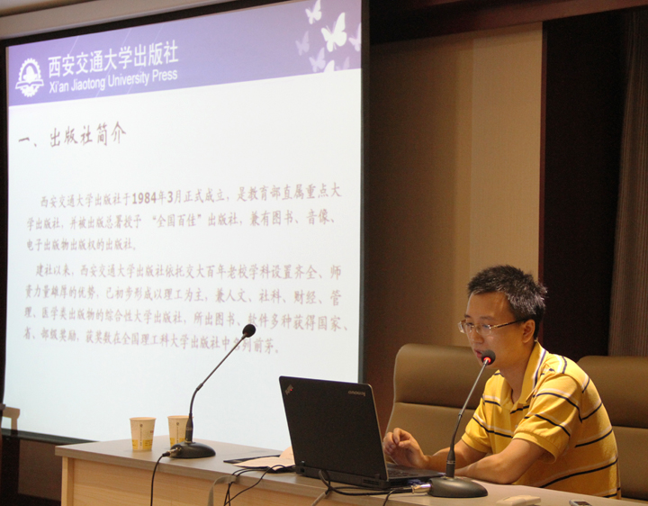 本网讯:由中国大学出版社协会代办站工作委员会、高等学校出版社图书代办站服务中心主办的大学出版社新优教材推介、洽谈会2012年7月31日在宝鸡召开。 西北工业大学出版社、北京航空航天大学出版社、北京师范大学出版社、陕西师范大学出版社、上海财经大学出版社、郑州大学出版社、北京大学出版社、南京大学出版社、辽宁大学出版社、北京交通大学出版社、人民教育出版社、江苏大学出版社13家大学出版社分别介绍了本社新优教材、重点教材。