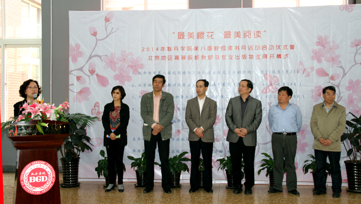 本网讯 2014年4月23日上午,“最美樱花 最美阅读”2014耿丹学院校园读书月活动启动仪式暨北京地区高等院校教材及专业出版物巡展揭幕式在北京工业大学耿丹学院图书馆隆重举行。