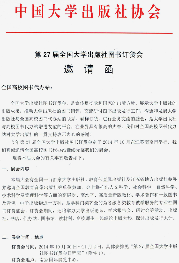 第27届全国大学出版社图书订货会邀请函 - 代办站经营之道 - 中国高校教材图书网