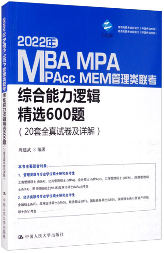 2022年MBA、MPA、MPAcc、MEM管理类联考综合能力逻辑精选600题(20套全真试卷及详解)