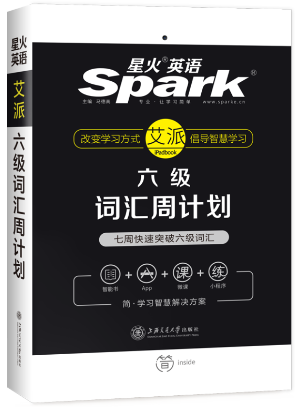本书根据新大纲编写而成,分为核心词汇和认知词汇两大部分。其中第一部分是核心词汇。分成七周,按照单词在历年真题中出现的频次,由高到低排列,重点突出。每周“预习——学习——复习”;每天50词,单词轻松记。第二部分是附录,收纳认知词汇,帮助同学查缺补漏。另外本书是一本集图书、手机App&小程序、网课于一身的通关宝典。 手机App软件学习+名师微课+小程序,多途径、多感官的智慧学习让记单词更轻松。