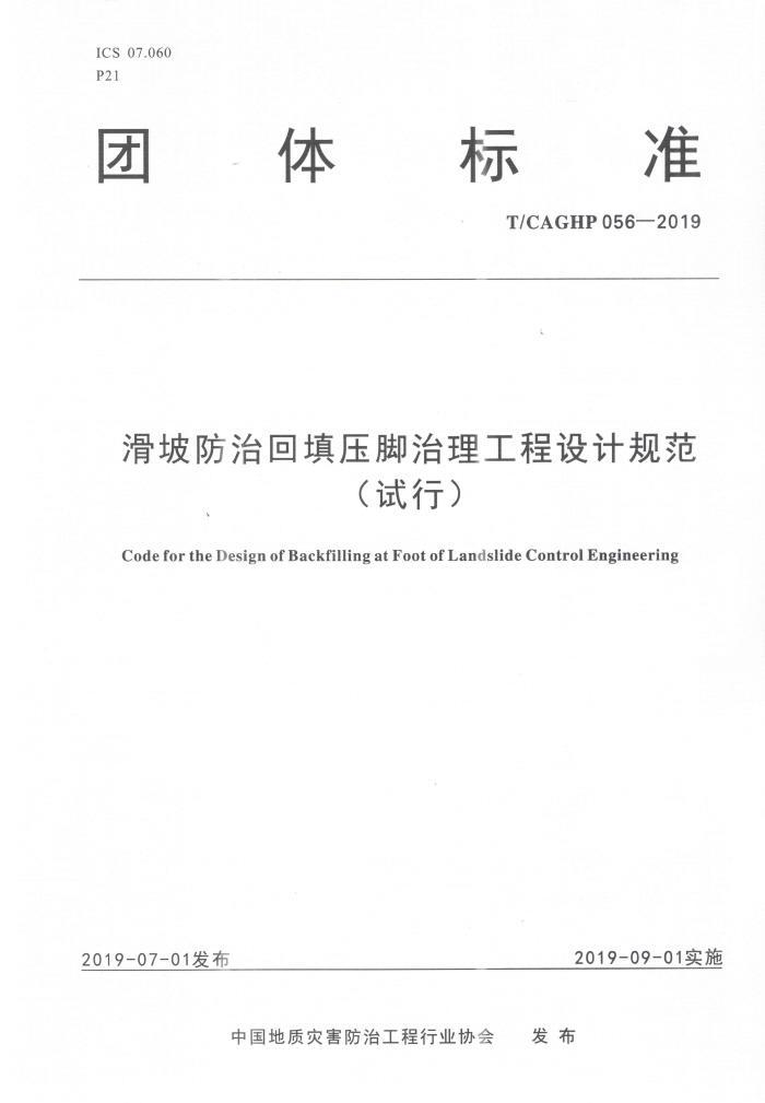 滑坡防治回填压脚治理工程设计规范(试行)T/CAGHP 056-2019