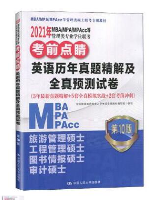 2021年MBA/MPA/MPAcc等管理类专业学位联考考前点睛 英语历年真题精解及全真预测试卷 - 中国高校教材图书网
