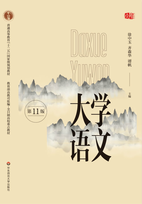 1.新中国第一本《大学语文》教材全新修订出版 1981年,新中国第一本《大学语文》教材在华东师范大学出版社出版后,一直坚持与时俱进、不断修订,过三至五年便会推出新的修订版。2018年11月,30多年传统经典老教材重新焕发活力,全新修订的第11版《大学语文》教材新鲜出炉了! 2. 声名远扬,屡获殊荣 由教育部高教司组编,是教育部“九五”、“十五”、“十一五”、“十二五”国家级规划教材,并作为全日制高校开设大学语文课程的重点教材,被列入高教司21世纪高校教材推荐书目。 3.徐中玉先生领衔的编者团队,编委会成员来自清华大学、复旦大学、南京大学、上海交通大学、南开大学、中山大学、华东师范大学等,实力雄厚。