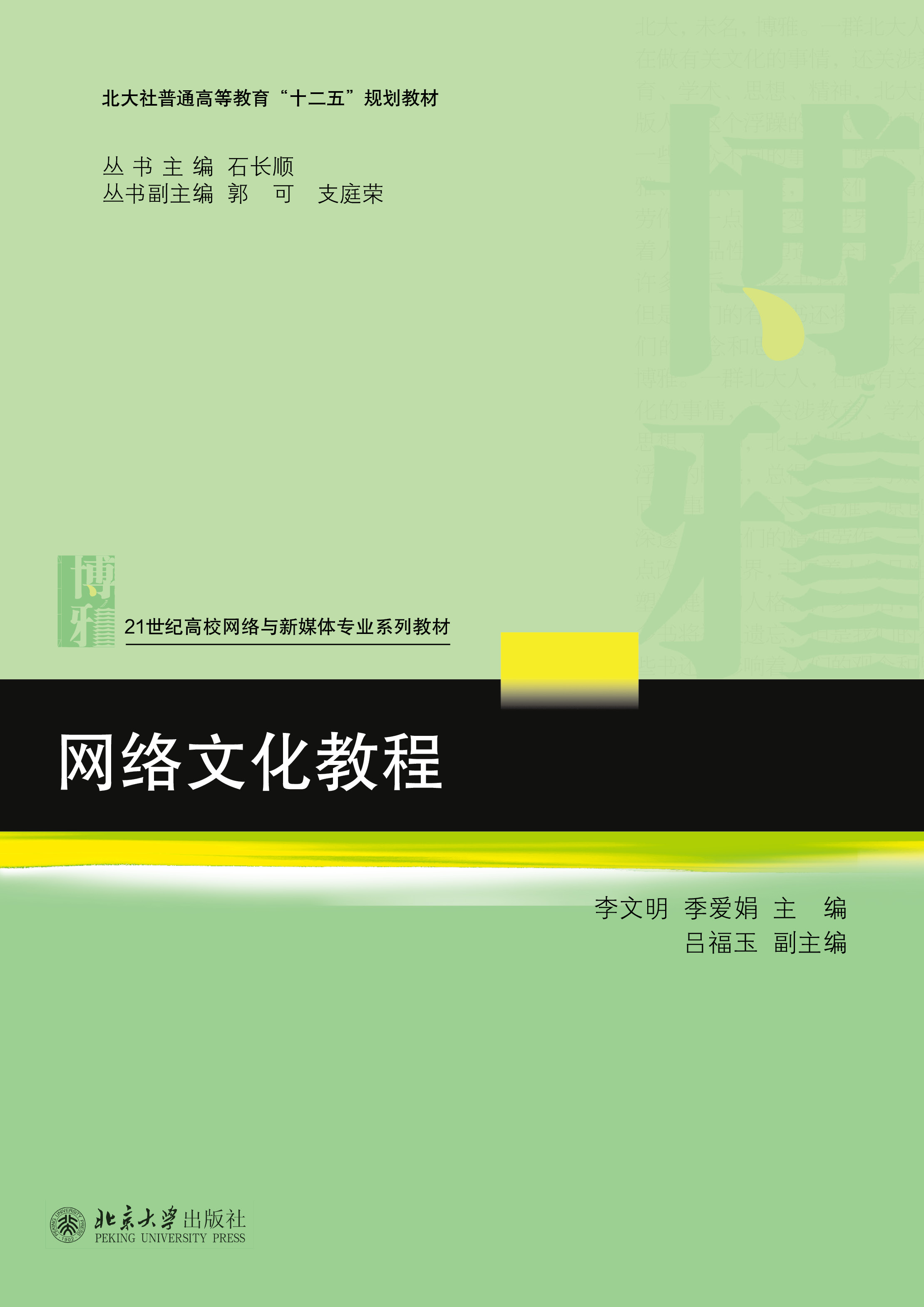 2012年全国28所高等院校正式被批准新设专业"网络与新媒体",而这一专业的发展迫切需要高水平的系列专业教材,目前市场上还没有系统的有关网络与新媒体专业的合适教材,"全国高校网络与新媒体专业规划教材"系列正是顺应这一形势需要推出的。 这套教材是联合华中科技大学、暨南大学、华中师范大学、上海外国语大学、湖南大学、湖南师范大学、华南理工大学、广州大学、河南工业大学、沈阳体育学院、贵州民族大学、四川民族学院等28所高校的50多位高校专家编写,内容囊括了14门主干课程和11门选修课程。由此形成国内首个系统、权威的专业课程体系。 聘请上海外国语大学教授兼教育部指导委员郭可,暨南大学支庭荣教授,张晋升教授为专业建设顾问,丛书主编石长顺是华中科技大学终身教授,兼任教育部新闻学教学指导委员会委员,华中学者",华中科技大学广播电视与新媒体研究院院长,武昌分院院长。作者队伍由各高校院系负责人、学科带头人及授课老师组成,代表了网络与新媒体专业领域的权威。 《网络文化》是选修课系列中对应的教材。