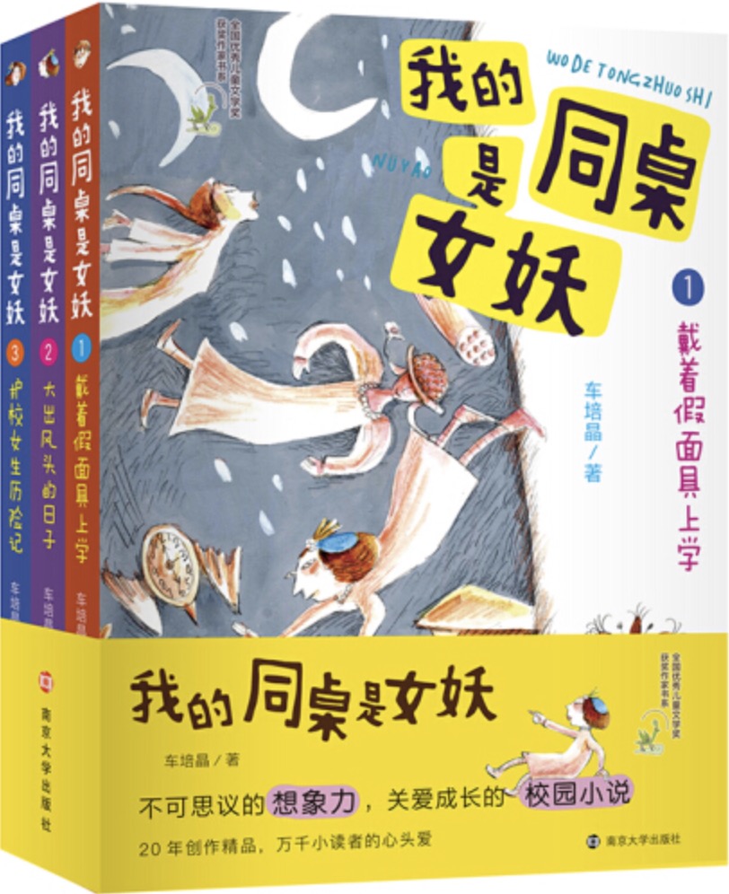 本书为“我的同桌是女妖”的套装,包含《我的同桌是女妖》、《芭比娃娃班主任》、《戴假面具上学》三册。故事讲述的是,我是一个相貌平平的小女孩,却意外和一个小女妖乔细做了同桌。她长着两只大大的翅膀,模样丑丑的。我本来平淡无奇,在学校从来没有引起过别人的注意。因为乔细,我一下子变得风光起来。这套书讲述了女妖乔细给我的生活带来的变化,以及我和乔细之间发生的奇异有趣的事情,带给小读者不一样的校园故事体验。车培晶的创作是以想象为依托来建构一种关于儿童梦想的诗学,他的作品中关于幻想的叙事有与西方幻想叙事重合的地方,也有他自己的独特探索与尝试,显示出别具一格的审美意义。 单册内容简介 《戴着假面具上学》ISBN 978-7-305-23459-0 内容简介 一天清晨,几乎每天都迟到的“我”意外地被姥姥早早叫醒,赶到了学校,在教室里遇上小女妖乔细。本指望小女妖可以将我平凡的日子变得精彩纷呈。可没想到她将我的生活搅得天翻地覆一团糟之后却又突然消失…… 《大出风头的日子》ISBN 978-7-305-23679-2 内容简介 乔细用魔法让我变成了小仙女,也逐渐让我变得自信起来,而这些并不完全是因为魔法的作用。从前的日子里,我太平常,从来没有引起谁的注意,现在终于可以出人头地了。自此,我和乔细结伴开启了新的冒险旅程,一路上发生了许多奇妙有趣的事情,也在旅途中收获了珍贵的友情。 《护校女生历险记》ISBN 978-7-305-23723-2 内容简介 我终于摆脱了自卑心理,成长为一个自信阳光的女孩,小女妖也摆脱了舅舅、舅妈控制,实现了读书学习的梦想。而我的被同学戏称为“芭比娃娃”的老师,也由脆弱变得坚强。这是一套很有特色的儿童小说,现实和魔幻交融,两者之间没有清晰的分界,很符合儿童心理。幻想世界的经历照进了现实,能帮助孩子们克服生活中的小烦恼,找到自信,阳光地成长。