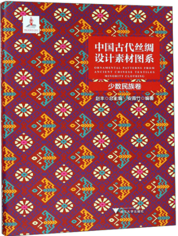 《中国古代丝绸设计素材图系(少数民族卷)》为国家科技支撑计划课题“中国丝绸文物分析与设计素材再造关键技术研究与应用”的研究成果,在采集了大量少数民族纺织品信息后,从中挑选了15个少数民族的145件织物纹样进行整理、分析,按照纹样题材分为动物纹、植物纹、天地属相/器物纹、文字纹、几何纹、人物纹六大类,包括织锦、刺绣、拼布等技艺。《中国古代丝绸设计素材图系(少数民族卷)》对纹样的题材、色彩及其构成形式的分析,较为全面地呈现了少数民族纺织品,希望可以为纺织品的设计再创作提供灵感和素材。