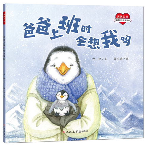 “满满的爱”安全感系列绘本共有8个分册,分别是:《妈妈的魔法亲亲》《爸爸的魔力抱抱》《妈妈上班时会想我吗》《爸爸上班时会想我吗》《我好喜欢妈妈》《我好喜欢爸爸》《一会儿是多久》《爸爸不见了》。这是一套帮助孩子建立安全感的绘本,选择了8个在生活中很有代表性的主题,旨在帮助孩子缓解由于分离而引起的较大的离别情绪反应——分离焦虑,引导孩子学会正确、良好地控制自我情绪,建立充足的安全感。在亲子共读时,爸爸、妈妈和孩子可以一起学习、一起成长,一起感受到满满的爱!儿童心理专家和知名童书作家倾情推荐。 《爸爸上班时会想我吗》:小企鹅比利是个超爱爸爸的“爸爸黏黏虫”!他超级享受跟爸爸一起玩的时间。这天,爸爸告被选中要去执行一个特殊任务——挖宝藏,比利十分舍不得爸爸,挖宝藏会比跟我一起玩更有趣吗?爸爸上班时会不会想我呢?