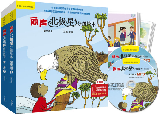 “丽声北极星分级绘本”由“牛津阅读树”作者携手国际著名插画家专为非英语母语国家读者打造。“丽声北极星分级绘本”主题与新课标话题全面匹配,既适合与教材融合在课堂教学场景下使用,也可作为课后辅导读物或开展家庭阅读时使用。丽声北极星分级绘本故事生动有趣,话题贴近学生生活,能够帮助学生丰富生活经历,提升阅读能力。 《丽声北极星分级绘本(第三级)(定制版)》包含12册可点读故事书,28张可点读故事卡(可拆分为112张小故事卡)、2张MP3光盘,扫描封底二维码可收听下载音频故事,家庭阅读指导手册、故事译文可至“外研童书”公众号免费下载。《丽声北极星分级绘本》需使用“外研通”点读笔点读,所需点读文件请至外研通官网下载。
