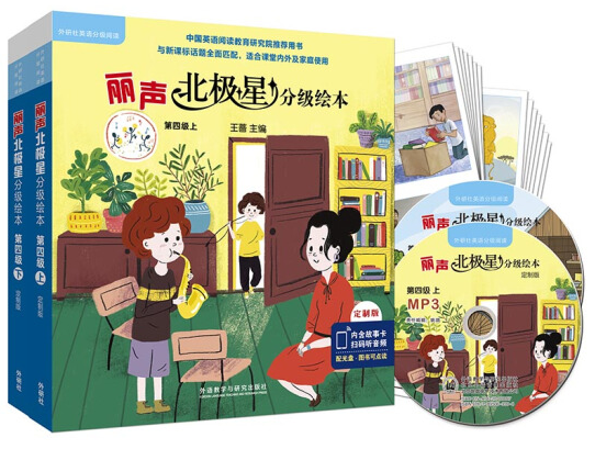 “丽声北极星分级绘本”由“牛津阅读树”作者携手国际知名插画家专门为非母语国家读者量身打造。“丽声北极星分级绘本”每册一个主题,与新课标话题全面匹配,既适合与教材融合在课堂教学场景下使用,也可以作为课后读物或开展家庭阅读时使用。故事生动有趣,主题贴近学生生活,能够帮助学生丰富生活经历,全面掌握小学段英语词汇、句型及语法现象,提升英语阅读能力。 《丽声北极星分级绘本(第四级)(定制版)》包含12册可点读故事书、28张可点读故事卡(可拆分为112张小故事卡)、2张MP3光盘,扫描封底二维码可收听下载音频故事,家庭阅读指导手册、故事译文可至“外研童书”公众号免费下载。《丽声北极星分级绘本》需使用“外研通”点读笔点读,所需点读文件请至外研通官网下载。
