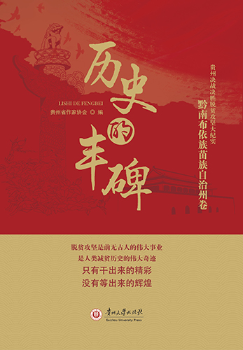本丛书是反映贵州波澜壮阔的伟大变革的历史画卷,是书写脱贫攻坚的奋斗史诗。站在全省的角度创作1部报告文学,由概述、各方面成效和亮点组成;站在9个市州的视野各创作1部报告文学,由反映全市(州)脱贫攻坚成效综述,各市、区、县脱贫攻坚亮点(成效),以及成绩突出、特点突出的乡村组成,共计10部:《历史的丰碑·省卷》《历史的丰碑·贵阳卷》《历史的丰碑·遵义卷》《历史的丰碑·安顺卷》《历史的丰碑·六盘水卷》《历史的丰碑·铜仁卷》《历史的丰碑·毕节卷》《历史的丰碑·黔东南卷》《历史的丰碑·黔西南卷》《历史的丰碑·黔南卷》。