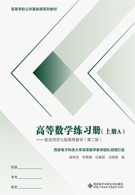 本练习册包括两部分内容: 练习题和参考答案。 按时完成练习作业是理工科大学生巩固高等数学课堂学习效果的基本要求, 所附 参考答案可方便学生完成作业后及时检查。 为了方便教师和学生收交作业, 本练习册分为A、 B两册, 即奇数周作业 为A册, 偶数周作业为B册。