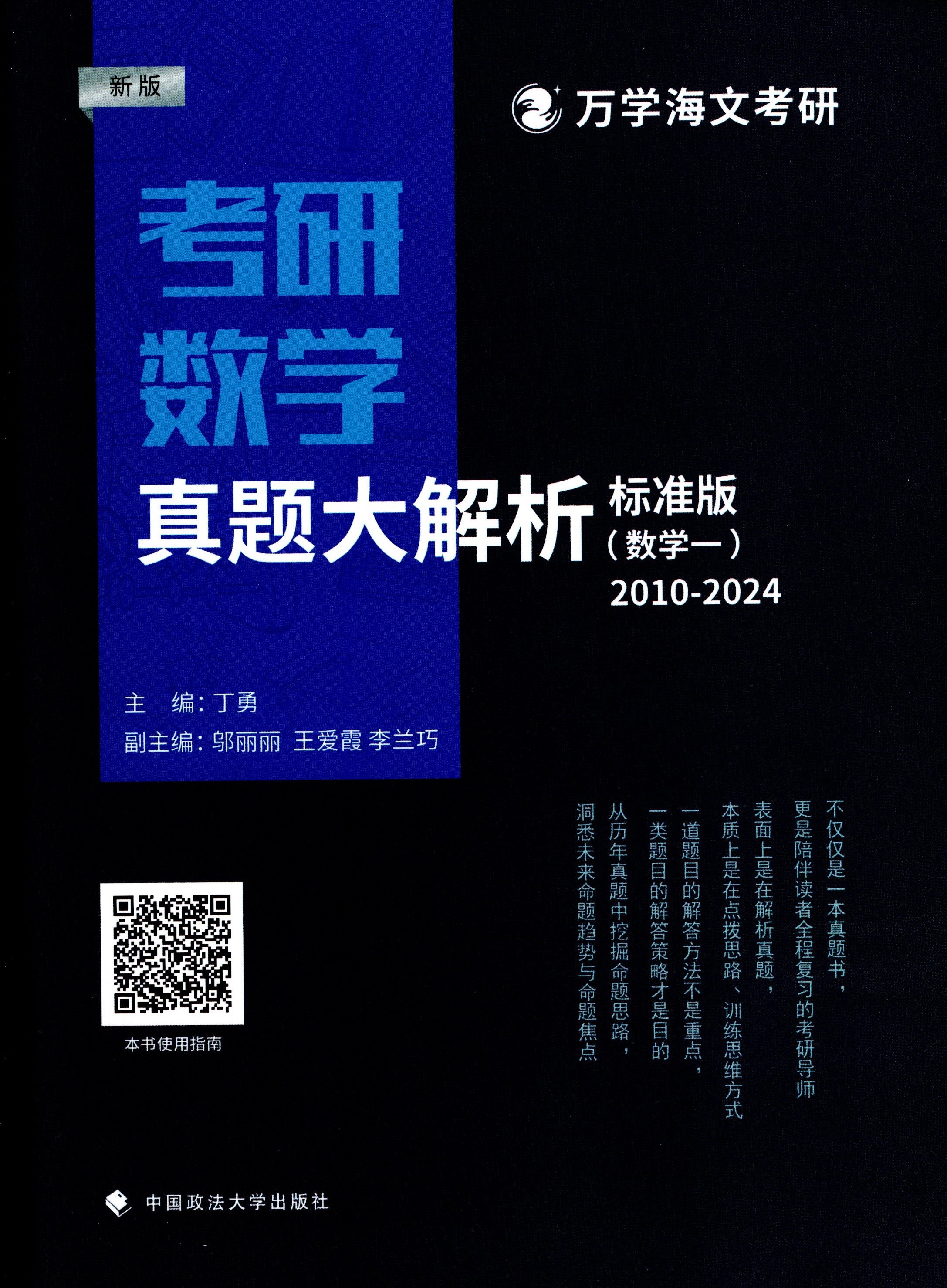 《真题大解析(标准版)》是一本适合考研全程必备的真题集,汇集了2010年至2024年共15年的考研真题。本书大体上分两部分:分类纵览和试题解析。首次通过分类纵览的形式将历年试题所涵盖的考点和题型进行归纳分类,目的是使考生对整个试卷的命题设置一目了然,对历年考查知识分布了然于胸,帮助考生把握复习重难点,有的放矢。试题解析,不仅给出题目的详细解答过程,而且对问题设置,如何思考以及题目中涉及的知识点一一点出,将复杂问题简单化。总之,这是一本集编者多年教学和考研辅导经验的宝贵资料,开卷有益。