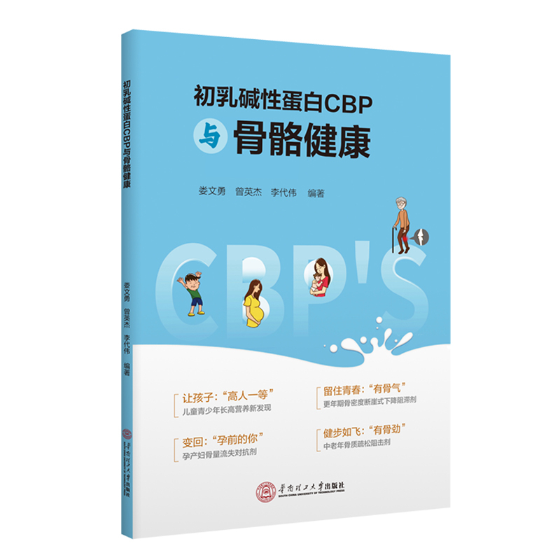 CBP(初乳碱性蛋白)是一类相对分子质量非常小的活性蛋白,可直接作用于骨骼细胞,协调成骨细胞和破骨细胞的活动,保持两者的动态平衡,促进骨骼生长,修复骨质。本书为营养科普教育读本,图文并茂地介绍了CBP的来源、作用、原理,并着重介绍CBP对儿童青少年、孕产妇、更年期女性、中老年等人群骨骼健康的促进作用。此外,还介绍了CBP初乳碱性蛋白在日本、韩国的应用情况,并阐述了国内CBP的研究与应用前景。本书作为全球首本推广CBP初乳碱性蛋白的科普读本,融合了多国专家对CBP的研究成果,采用通俗易懂的文字和图片介绍了CBP的营养价值,对我国居民提升骨骼健康,以及CBP产业发展具有非常重要的意义。