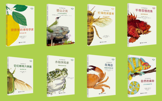 这套自然科普套装共 8 册,聚焦鱼类、昆虫、两栖类、蜂类、海滩生物、山地生物、自然规律、厨房食物等 8 大观察主题。每册以生动文字 + 专业手绘插图 + 实操观察指南的形式,讲解生物特征、生活习性、栖息环境与观察方法,比如教读者识别昆虫身体结构、分辨不同蜂类分工、观察鱼类洄游规律等;既有物种知识普及,也提供野外与日常场景的观察技巧,兼顾知识性、趣味性与实用性,适合亲子共读、自然爱好者入门及中小学自然教育使用。