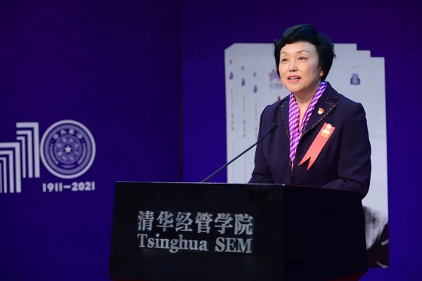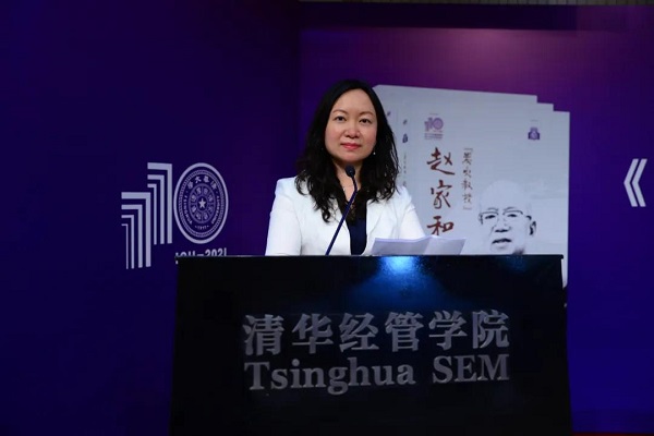 在播放清华经管师生参与录制的视频《坐标》之后,清华大学党委书记陈旭首先致辞。她着重提及,习近平总书记4月19日在清华大学考察时强调,教师是教育工作的中坚力量,教师要成为大先生,做学生为学、为事、为人的示范,促进学生成长为全面发展的人。赵家和老师就是这样一位大先生。她指出,赵家和老师作为经管学院退休教授、清华大学优秀共产党员,一生兢兢业业、做出杰出贡献的感人事迹以及心系教育、无私奉献的“炭火”精神,永远值得我们学习。她强调,这本新书弘扬“自强不息,厚德载物”“爱国奉献,追求卓越”的清华精神,作为典型的清华之子,赵老师的为学、为师和为人,是清华精神的体现,本书出版具有重大意义。陈旭表示,在清华大学迎来110周年生日之际,《“炭火教授”赵家和》一书作为110周年校庆出版物得以出版,要感谢各方的努力付出与配合支持,作者们用心体会清华精神,用情向全社会弘扬清华精神,并希望此书可以作为党史学习教育活动的学习材料,进一步弘扬赵老师一生奉献、大爱无疆的高尚师德,引导学生树立正确的人生观、价值观,用实际行动落实习近平总书记对教师和学生提出的要求,赵家和老师的光辉形象永远留在我们心间,我们要永远学习赵家和老师,永远怀念赵家和老师。