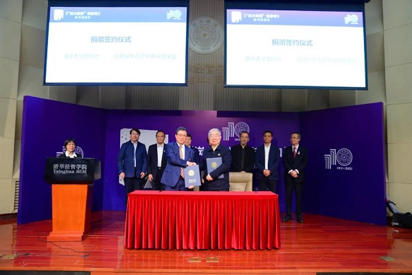 新书发布环节之后,举行了捐赠签约仪式。清华经管学院党委副书记赵冬青在开场白中指出,甘肃兴华青少年助学基金会是赵家和老师的生命重托,基金会自2012年2月正式成立以来,在广大校友和社会爱心人士、爱心企业的捐赠支持下,持续健康发展,基金会累计资助高中生的人数6120人,近80%进入高等院校学习。