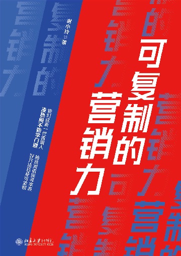 书名:可复制的营销力(订购) ISBN:978-7-301-32021-1 作者:谢小玲 字数:220千字 定价:59.00 出版社:北京大学出版社 出版日期:2021-04-06