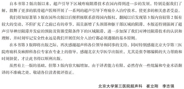 北京大学医学出版社《超声引导下区域疼痛阻滞图谱》第2版中文版自2018年推出后,受到了读者们的广泛欢迎。很多读者认为它对工作帮助大、实用性强、紧跟技术发展、专业性强。