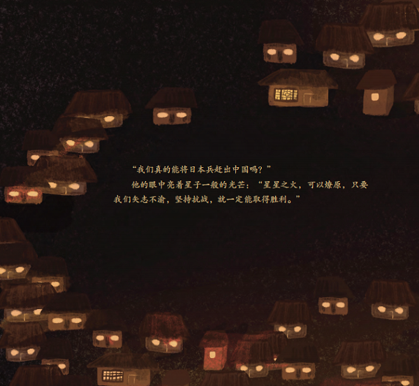 故事中的曾祖父,在旧中国充满了很多的苦难生活回忆,在新中国又有着越来越多的喜悦与自豪感。为了更好地匹配内容,绘者特意设置了一明一暗两条线索。明的是蒲公英,代表传播、希望和种子:暗的是瓢虫,代表生生不息和生命,是理想的象征。在风中四处飘转的蒲公英,却能够一往无前地向前,最终在新的环境中重获新生,正如广大人民在共产党的带领下走出黑暗,走向新生。而从封面到内文,“寻找瓢虫”成了阅读中的一个小游戏,给孩子们带来了乐趣。