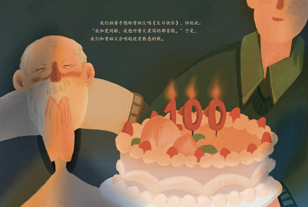 为了便于孩子们理解“热爱共产党”这一宏大主题,也为了更清晰地回答“为什么只有共产党能领导中国走向富强”,我们采用了以小见大的艺术手法,从一位普通百岁老人——曾祖父一生的故事入手,通过饱含深情的文字讲述中国在这100年间的历史巨变,使孩子们认识到“热爱共产党”是人民的必然选择,是历史的必然选择。