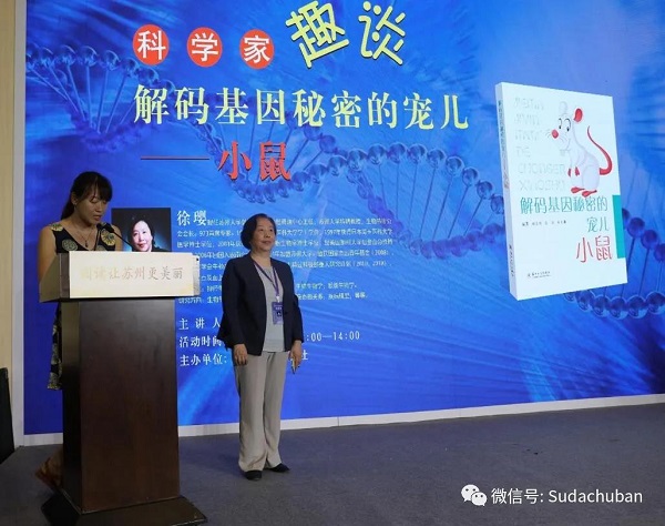 7月8日下午1点,苏州大学出版社“科学家趣谈解码基因秘密的宠儿——小鼠”知识讲座在苏州国际博览中心书香苏州馆举行,剑桥-苏大基因组资源中心主任、苏州大学特聘教授、973首席专家徐璎教授围绕《解码基因秘密的宠儿——小鼠》一书,为广大读者带来了一场精彩的科普讲座。