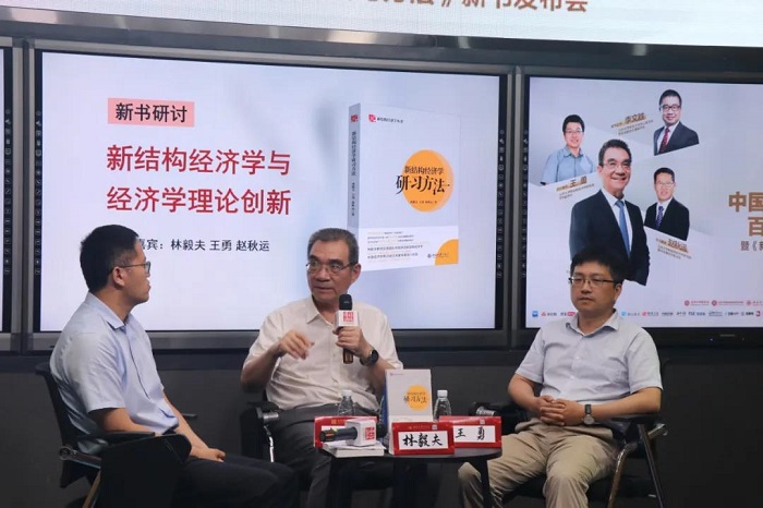 之后,由《新结构经济学研习方法》的三位作者——林毅夫教授、北京大学新结构经济学研究院学术副院长王勇教授和国内发展合作部主任赵秋运研究员,带来了主题为“新结构经济学与经济学理论创新”的讨论和分享。