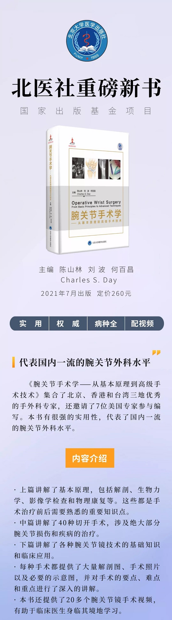 国家出版基金项目丨北京大学医学出版社《腕关节手术学——从基本原理到高级手术技术》隆重出版 - 书讯 - 中国高校教材图书网