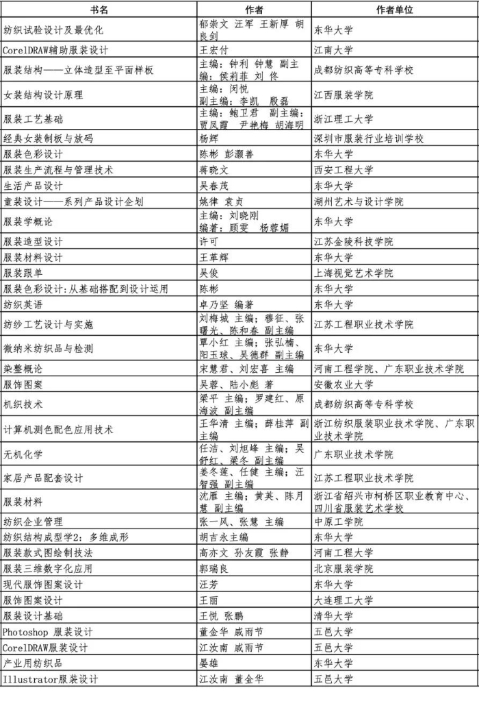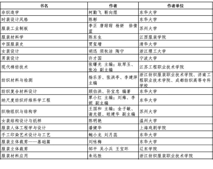 评选范围为近10年出版的在教学中反映较好的研究生、本科、高职、中职各类教材,包含纺织、轻化、服装、经管等专业。