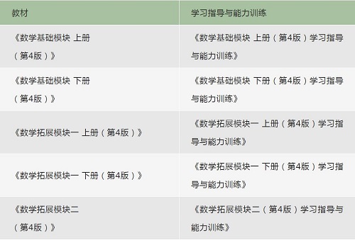本套教材紧扣课程标准,体现职教特点,体现分层教学,突显数学本质,配套教学资源丰富。其中,《数学基础模块上册(第4版)》《数学 基础模块 下册(第4版)》已于近日正式出版。