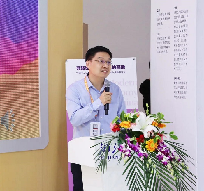 活动上,剑桥大学出版社亚太学术总监潘群,浙江大学出版社社长褚超孚、总编辑袁亚春等共同为《中国的早期近代经济:1820年代的长江三角洲》《汉代的谣言》英文版新书揭幕。参加活动的嘉宾还有中宣部进出口管理局负责人,浙江省委宣传部版权处副处长肖斌,中国科技出版传媒股份有限公司董事会秘书、法国EDP公司总裁张凡,中国社会科学院古代史研究所副所长邬文玲,中国社会科学院经济研究所副研究员常旭,浙江大学出版社副总编辑张琛、陈丽霞、陈洁,浙大社“启真馆”图书总监叶敏等。