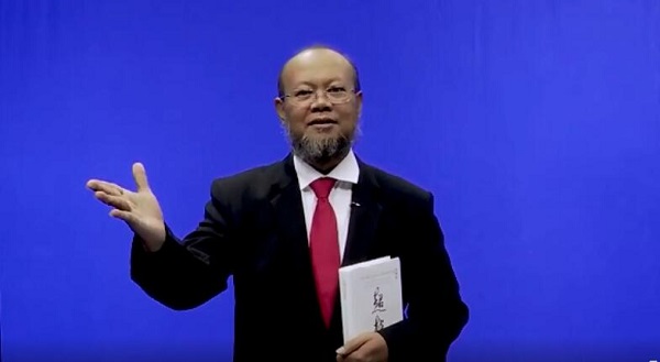 印度尼西亚特布卡大学校长Ojat Darojat教授用印尼语表达“超越远程教育”。