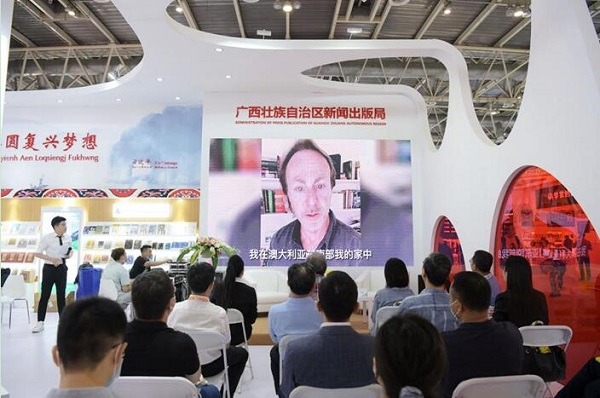澳大利亚著名诗人马克·特雷迪尼克视频致辞(秦念摄)