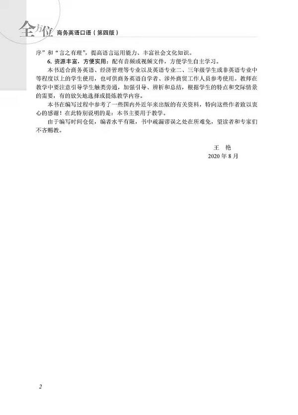 对外经济贸易大学出版社《全方位商务英语口语(第四版)》(订购)ISBN:9787566322739王艳 编著