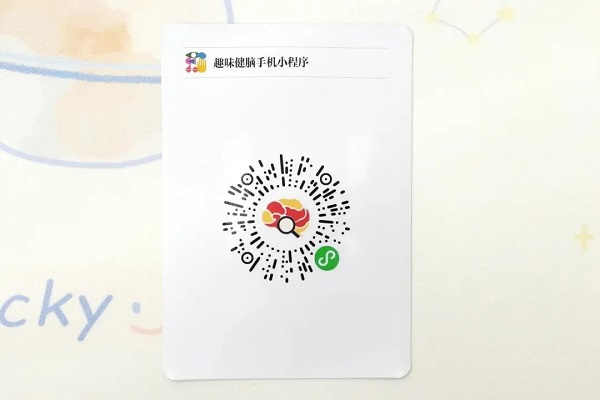 扫描趣味健脑手机小程序卡上的二维码进入小程序,参与不同类型益智活动。