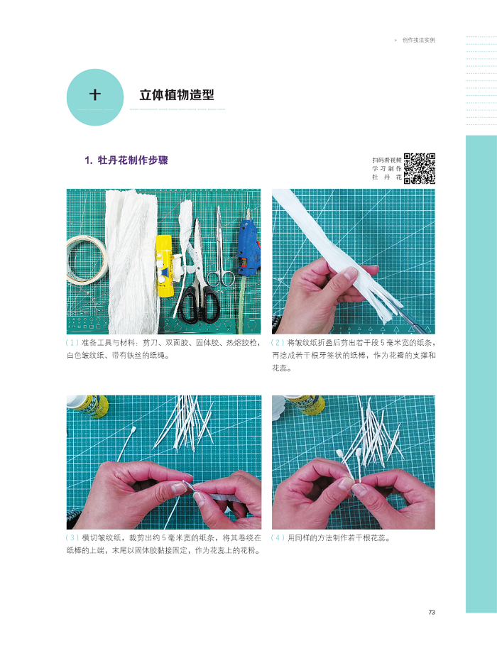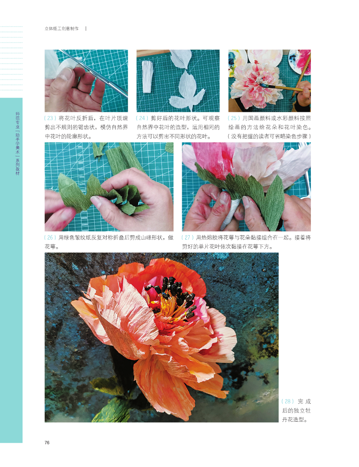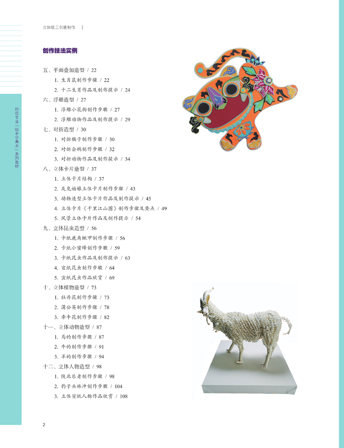 第二部分为创作技法实例,分为8个小节,由易到难、由平面到立体,介绍了8类立体纸工制作,提供了17个详细的制作范例,百余幅作品图片。