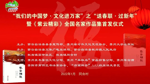1月17日,贵州省市30余名书画、诗人齐聚紫云自治县板当镇同合村,开展 “我们的中国梦·文化进万家”之“送春联·过新年”暨《紫云精彩》全国名家作品集首发仪式活动。