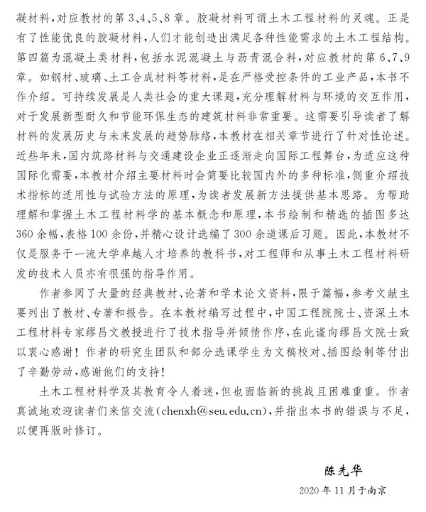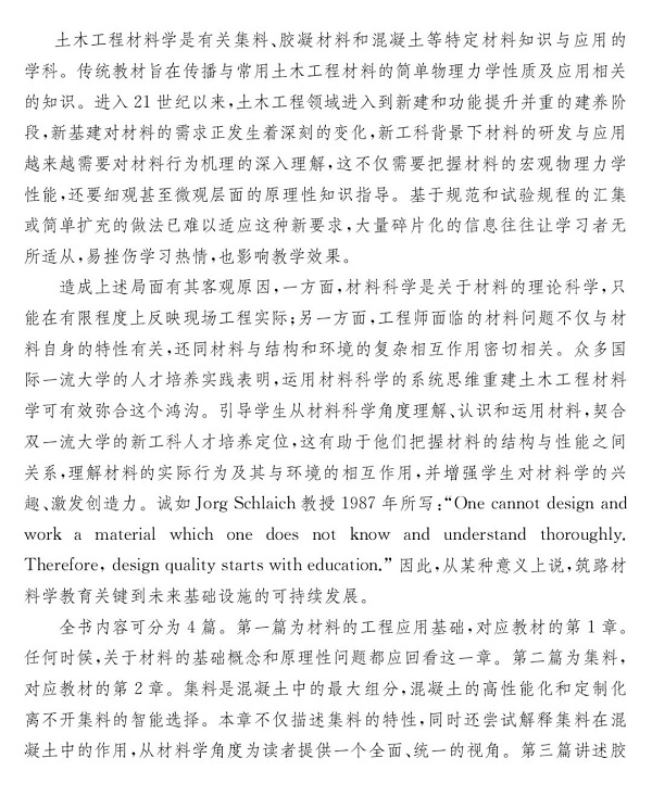 本教材绘制和精选的插图多达360余幅,表格100余份,并精心设计了300余道课后习题。本书不仅是服务于一流大学卓越人才培养的教科书,亦可供交通基础设施领域的工程师和从事土木工程材料研发的技术人员学习参考。