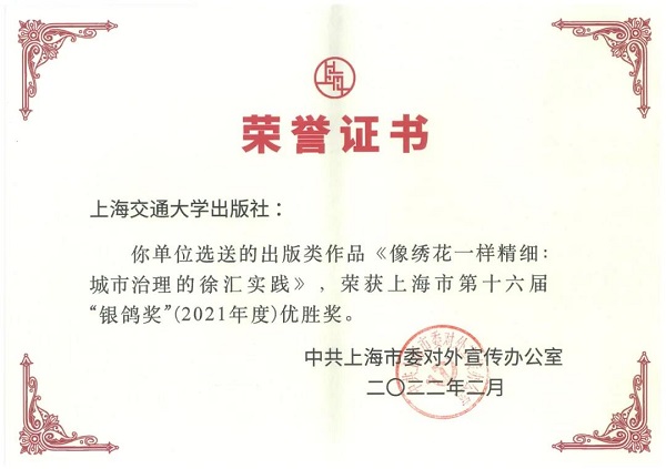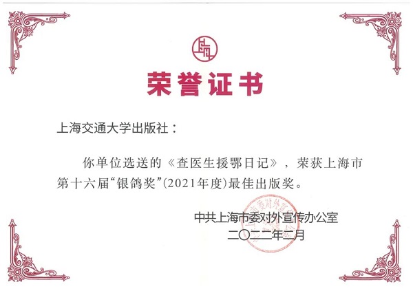 近日,由中共上海市委对外宣传办公室主办的上海市第十六届“银鸽奖”评选活动结果揭晓。此次评选活动共有214件作品入选本届“银鸽奖”,其中出版类51件。上海交通大学出版社《查医生援鄂日记》荣获第十六届“银鸽奖”最佳出版奖。《像绣花一样精细:城市治理的徐汇实践》荣获第十六届“银鸽奖”优胜奖。