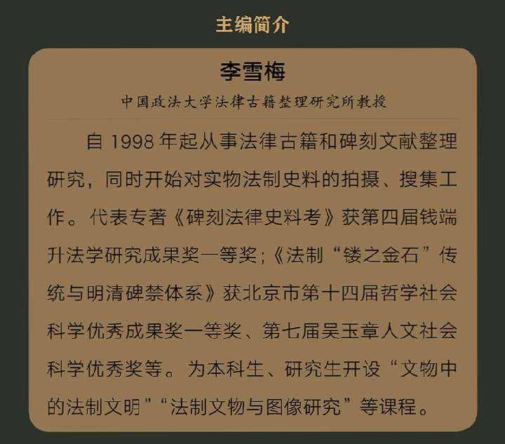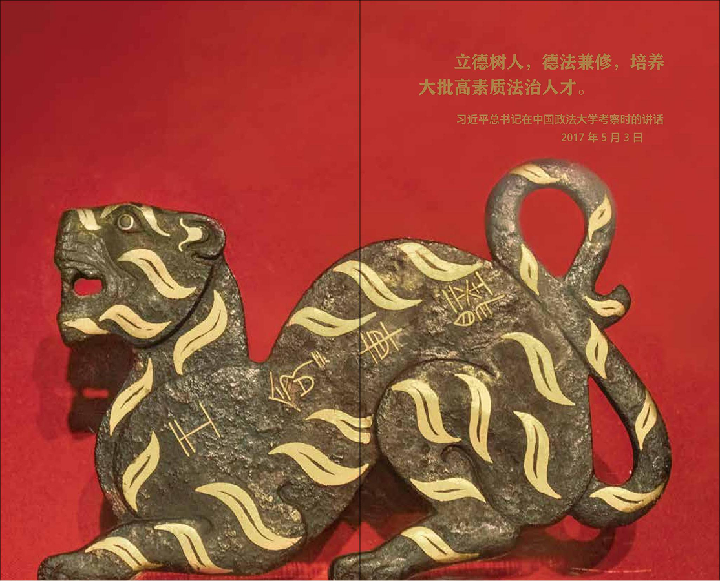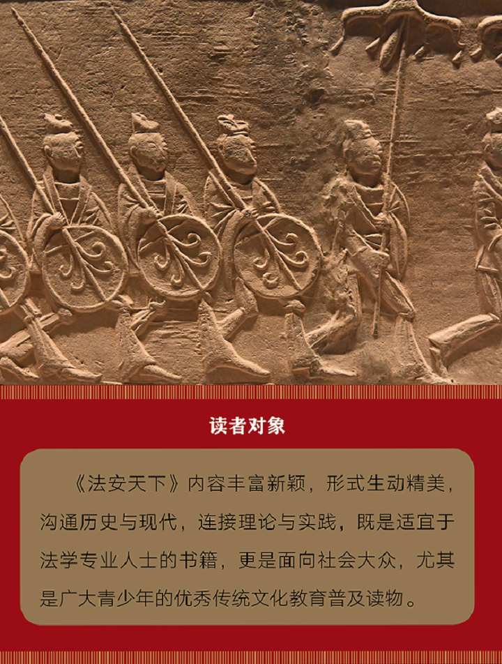 《论衡》言“礼贵意象”,法亦如此。法制文物是中华法制文明的重要象征。具有治理教化作用的法制文物在创作时力求呈现至善至美,如今我们再现解读时,亦秉持这一精神,图片千里挑一、文字精细打磨,力求尽善尽美。作为迎接中国政法大学70周年校庆的一份献礼,《法安天下》尝试以格物明法的方式,探求隐藏于国人内心且形塑于文物之上的治世景观,展现“法安天下,德润人心”的法治中国蓝图,期待能不负所望,以飨观者,以贺校庆。