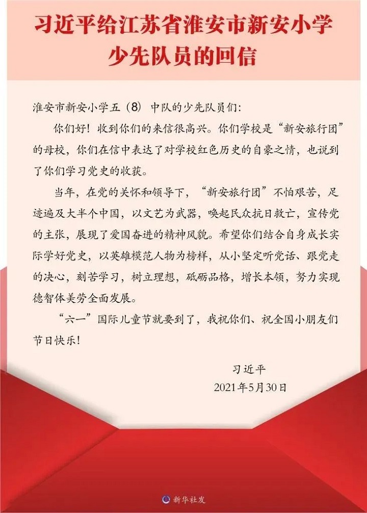 在习近平总书记给新安小学回信一周年之际