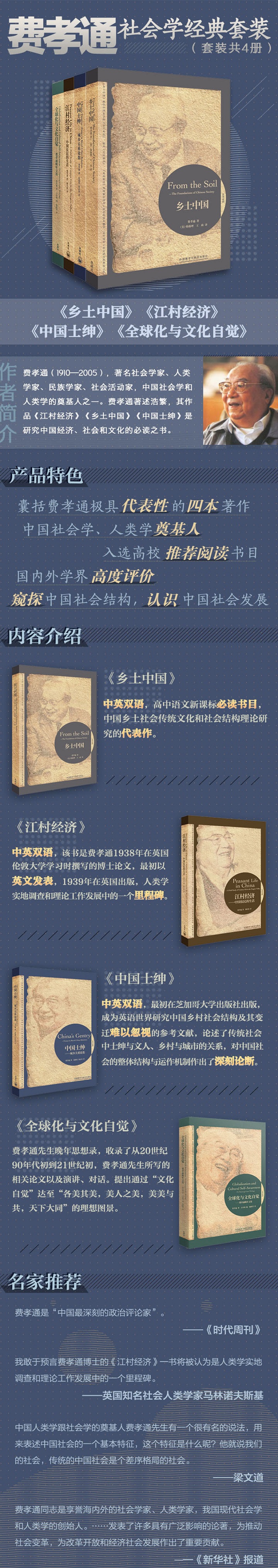费孝通社会学双语经典套装(《江村经济》+《乡土中国》+《中国士绅》+《全球化与文化自觉》) (订购)