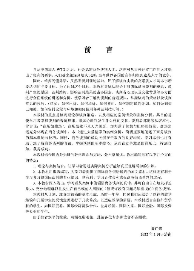 本教材共分六章,采用俄语原文,为学习对俄语区国际经济贸易类学科的学生提供直接沟通和原文理解的素材。讲解理论的同时我们结合实际案例分析,并就该案例中的问题采用理论和实际相结合进行分析,让学员通过实际案例分析能够真正理解所学的知识。