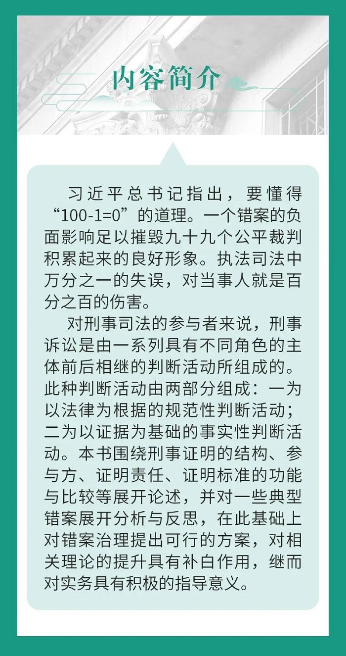 中国政法大学出版社《刑事证明结构:运行与优化》出版
